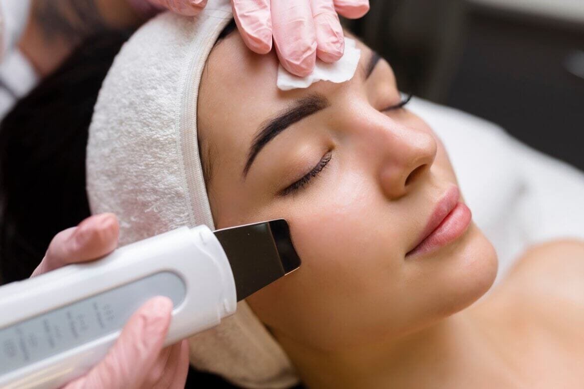 The different exfoliation methods can remove the dead skin cells, the accumulated sebum, and the impurities. They simultaneously provide a gentle deep cleansing, restoring the skin’s more youthful appearance. This stimulates the epidermal regeneration and helps the skin to regain its softness, even texture, and elasticity. A cosmetic exfoliation can be achieved with the help of chemical or mechanical means. The mechanical exfoliation uses a device or small particles, while the chemical methods involve acids, non-acidic peelings, enzymes, or other agents. And DermaClear combines both!